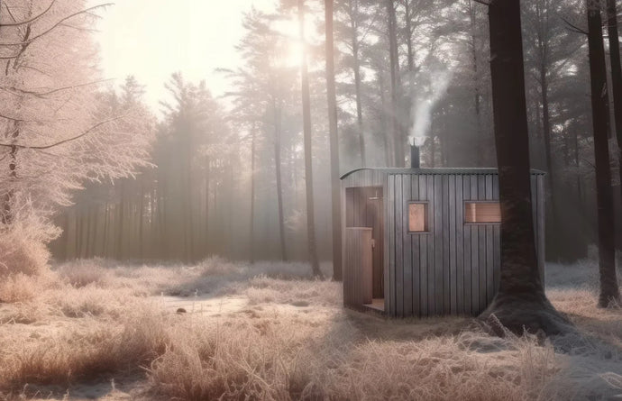 The Solara sauna features a sleek black rectangular design with a subtly raised roofline, giving it a bold yet elegant presence. Dual side glass panels offer glimpses of the surrounding nature, creating a seamless blend between indoor warmth and the outdoor landscape. Natural light enhances its tranquil atmosphere, making Solara a perfect retreat for relaxation, even without a fire. Inside, the contrast between the dark exterior and the warm natural wood of the benches and ceiling creates an inviting, immersive ambiance—offering a modern sanctuary of comfort and serenity.